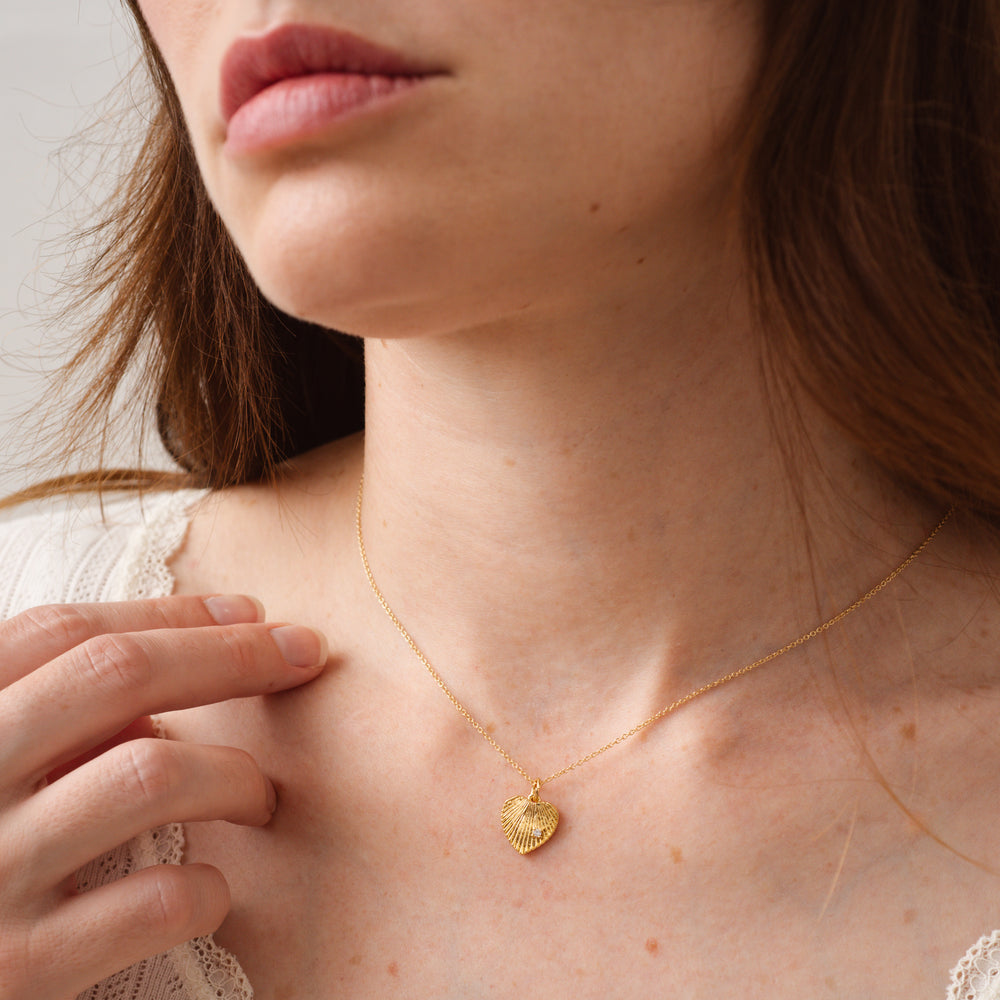 We love pieces that exude timeless romance and our Vintage Heart Necklace is just the thing. The 14mm gold-filled pendant features a subtle heart shape with textured elements and a petite CZ stone. It delicately hangs from a 16+2" gold-filled chain, offering a charming and sophisticated addition to any outfit, whether worn on its own or layered with others.