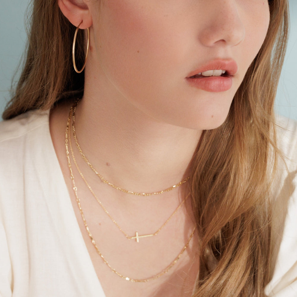 Calling all layering queens. These handcrafted pieces are ready to help you tell a story with your necklaces and add visual interest to any outfit. These chains are available in various metals and base lengths and can be shortened or lengthened to suit your look and add endless versatility. Want to take the guesswork out of layering? Our Triple Layer Necklace is the perfect do-it-all accessory. Go on, stack it with style.