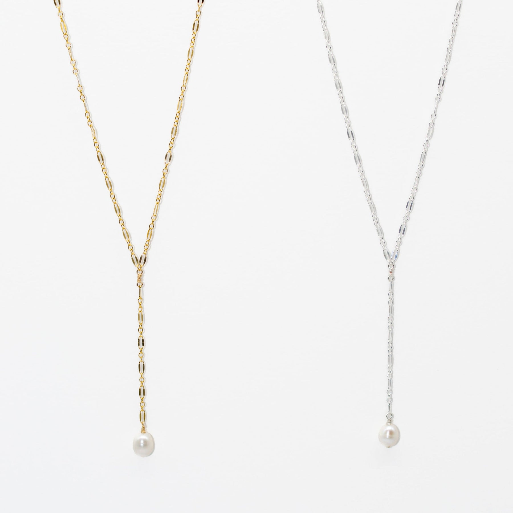A chic and elegant pearl lariat necklace featuring delicate sequin accents. Designed with a 17-inch chain, a 2-inch extender, and a 2.5-inch drop, it’s thoughtfully made to be comfortable, hypoallergenic, and perfect for kids, teens, and adults alike.