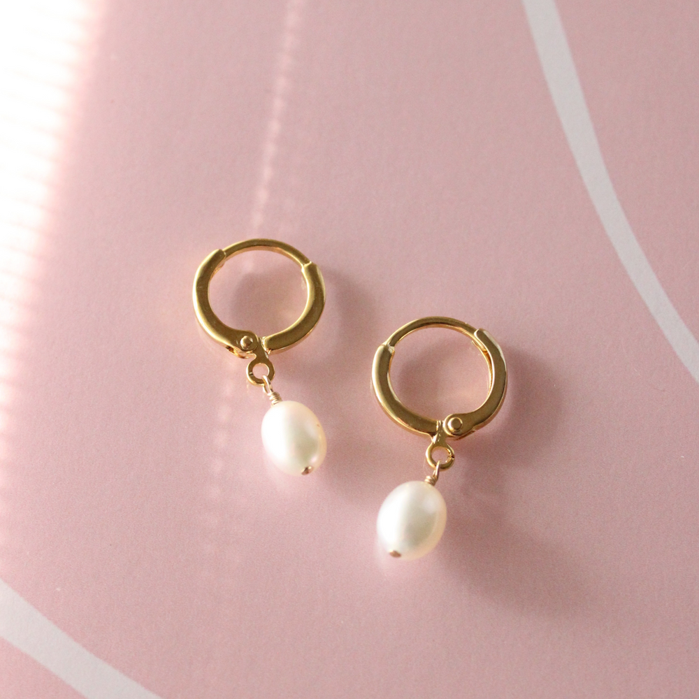 Love a finishing touch that's classic and summery? We've got just the thing. These earrings are crafted from freshwater pearls and dangle from gold-plated continuous hoops. Worn alone, the huggie style is perfect for adding a minimalistic touch to any warm-weather outfit. For extra summery, extra mermaid-y vibes, try pairing these pearl huggies with other pearl favorites, like the Pearl Classic Hoops or Pearl Chain Studs.