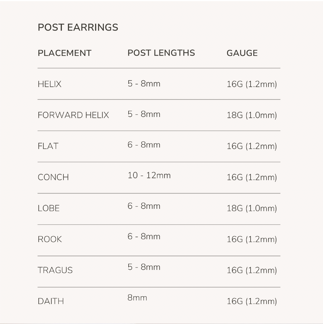 The ideal fit for your piercing comes down to three main specifications: length, gauge thickness, and diameter.