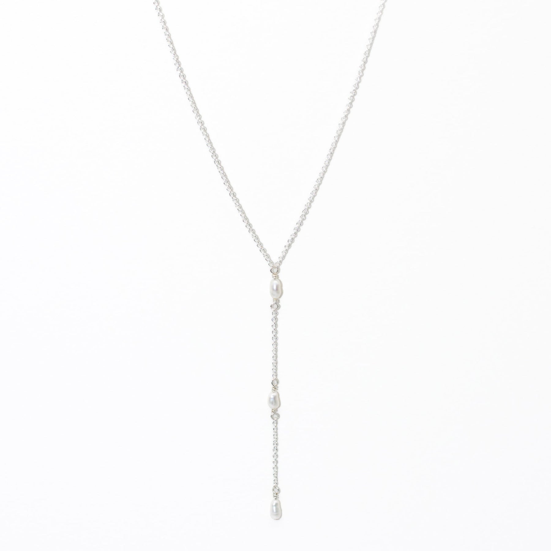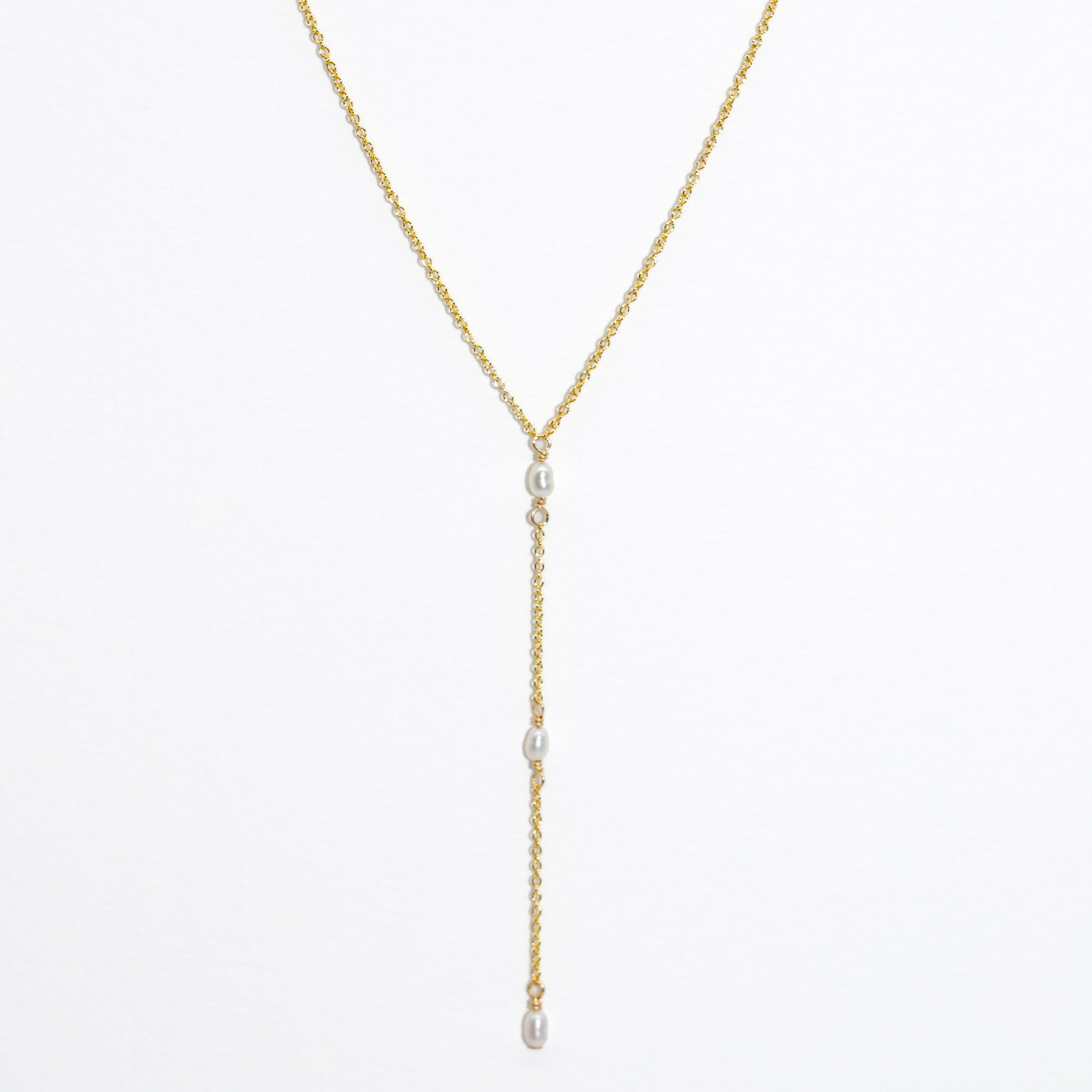 A delicate and timeless pearl lariat necklace featuring three petite pearls. Designed with a 17-inch chain, a 2-inch extender, and a 2-inch drop, it’s thoughtfully made to be comfortable, hypoallergenic, and perfect for kids, teens, and adults alike.